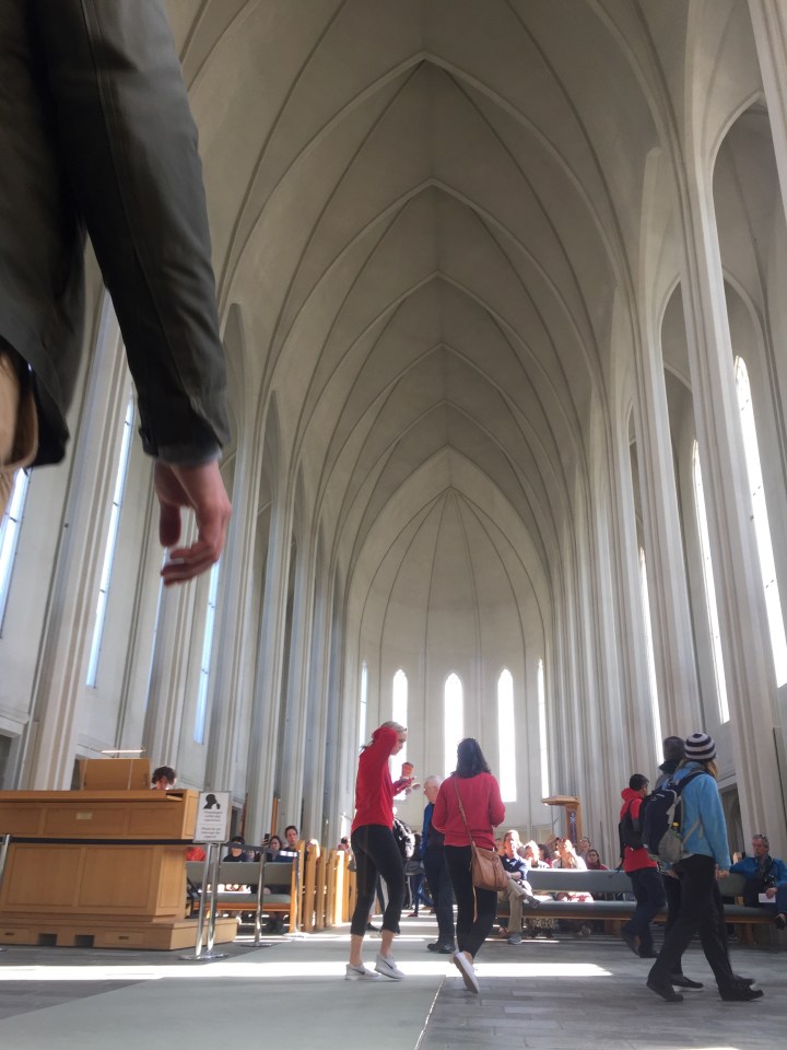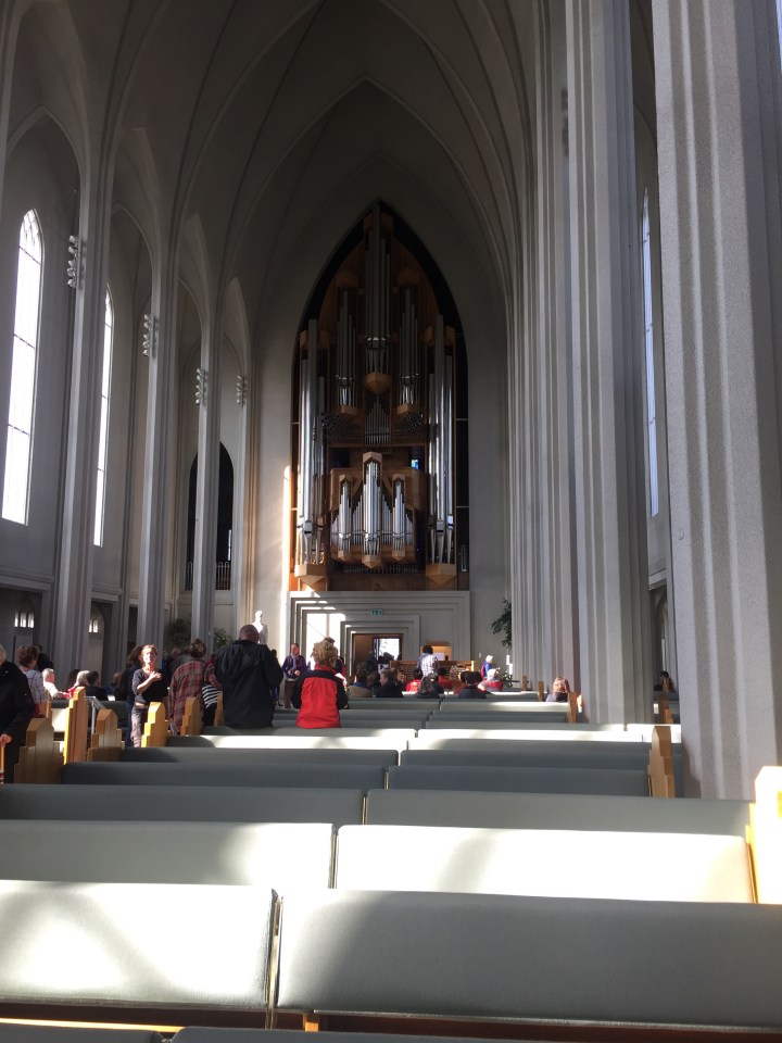 Our next stop was the famous Hallgrimskirkja Cathedral. It is not only the tallest building in Reykjavik, but also a gothic masterpiece. Designed to look like Iceland’s famous basalt columns, it towers over the city at 74.5 meters tall. We enter the West end of the church through massive bronze doors and enter the facade of the church to beautiful, clean, white walls with gothic flying buttresses high above. There is a man playing the 5,275-pipe organ. We walk down the side isles into the apse to get a better glimpse at the magnificent organ echoing the entire building. I’m in complete love with this cathedral and throughly enjoy its clean and bright interior.