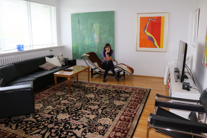 After the Blue Lagoon, we drive 45-minutes north to our first Air BnB. Our host, Hjörtur, showed us around our beautiful, modern apartment in a suburb just outside downtown Reykjavík. Its got huge Icelandic and modern canvases and pieces of art all throughout the apartment, along with unique pieces of furniture (see the ‘cow’ lounge chair?)