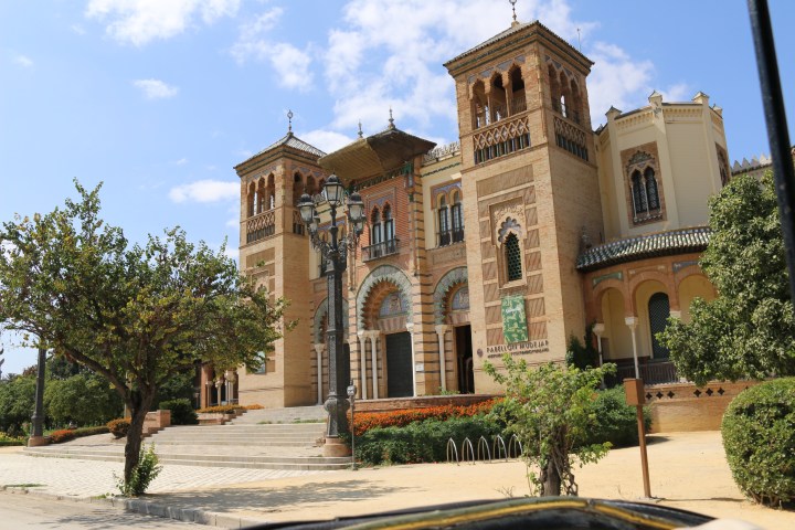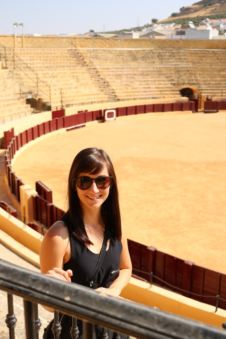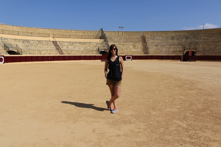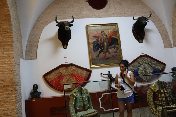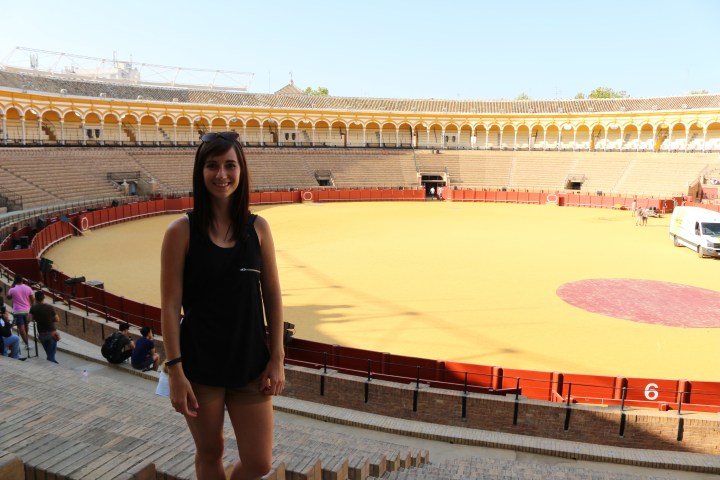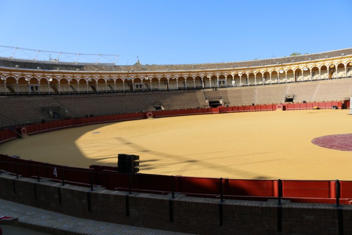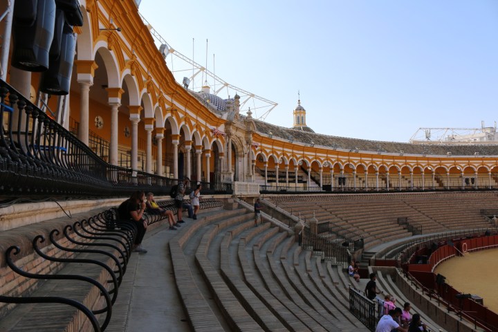 We then split off into twos where Yesenia and I walked a couple blocks over to La Plaza de Toros. The Plaza de toros de la Real Maestranza de Caballería de Sevilla is a 12,000-capacity bullring in Seville. During the annual Seville Fair in Seville, it is the site of one of the most well-known bullfighting festivals in the world. We paid €5 (student discount) to enjoy their 20-minute audio tour, complete with matador costume, bull head taxidermy littering the walls and of course, access to see the beautiful bull ring. It was a 10 out of 10!