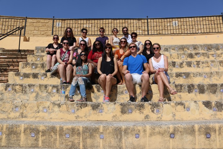 We had the entire arena all to ourselves so we got some amazing individuals and group photos. But the very best part was as we were about to leave, the staff brought out a giant face-in-hole print of the GOT characters and we all laughed as we jumped in and got our pictures as Daario Naharis, Tyrion Lannister, Daenerys Targaryen and Missandei, and Jorah Mormont. We then hopped back on the bus for our relaxing ride back to Sevilla.