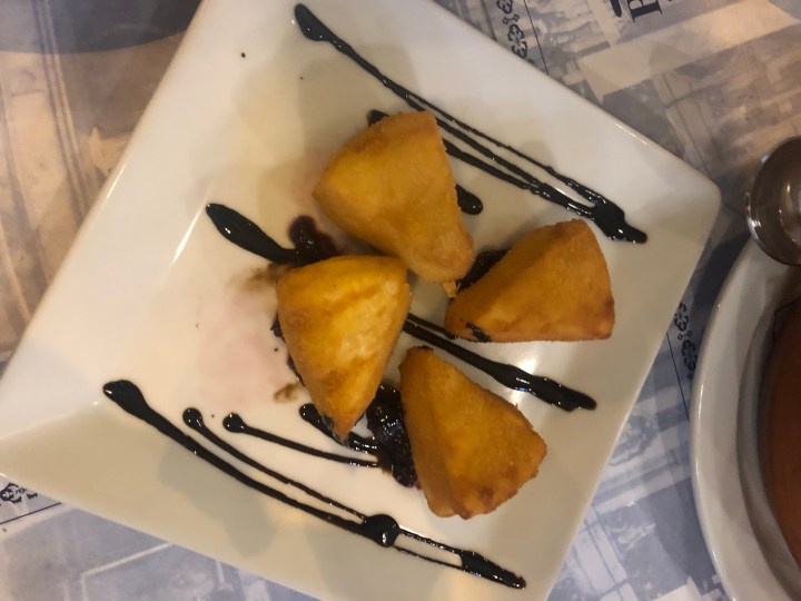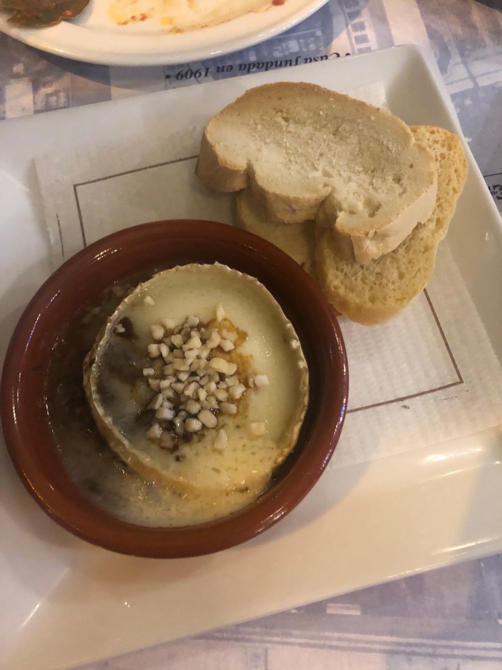 We finally had time to rest our feet for about an hour before Mallika, Yesenia and I went across the street from our hotel to Bar Plata for fried camembert, curry chicken, eggplant parmesan, gazpacho, spinach quiche, honey goat cheese, bull tail and patatas bravas.