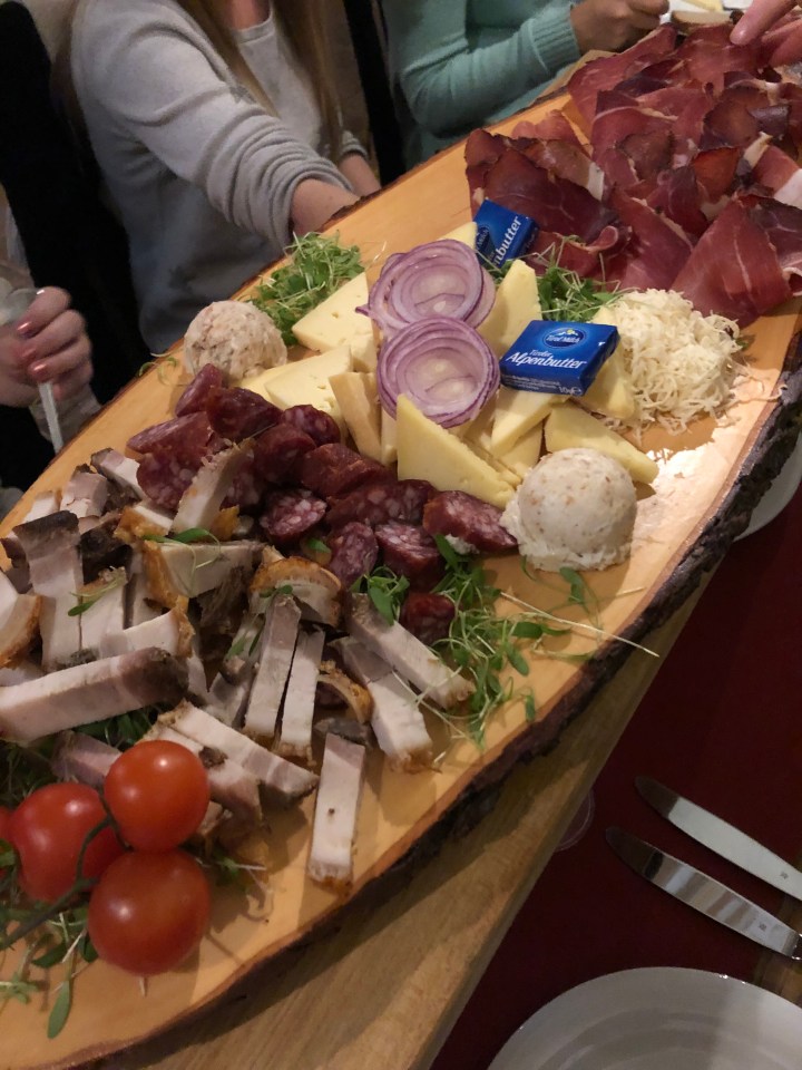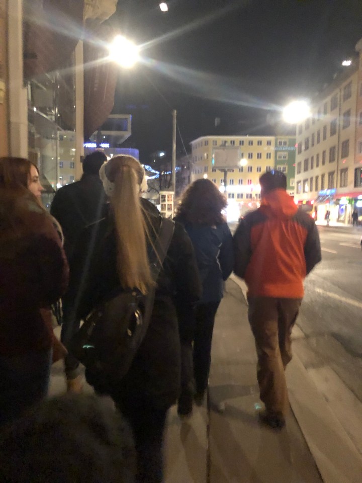 We arrived in Munich at 7:00a (1:00a back home) with our tour guide, Andreas, waiting at the airport to pick us up and we drive four and a half hours south via FlixBus to Innsbruck, Austria. It was a phenomenal ride, through the snow peak mountains, with little towns bustling with hikers and skiing. We passed Walchensee Lake, a stunning lake that was so vast, you couldn’t tell the sky from the water and had a beautiful fog overtop of it.