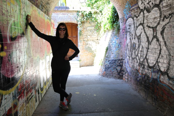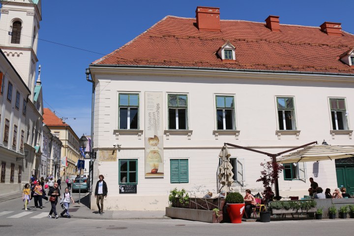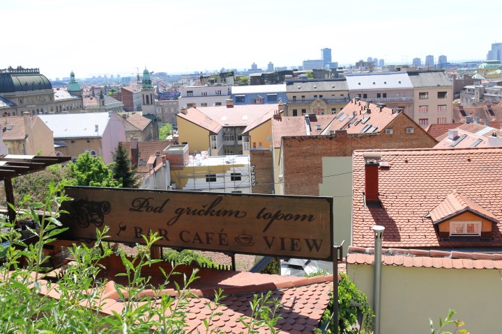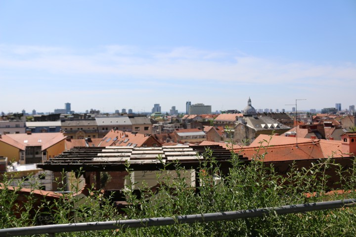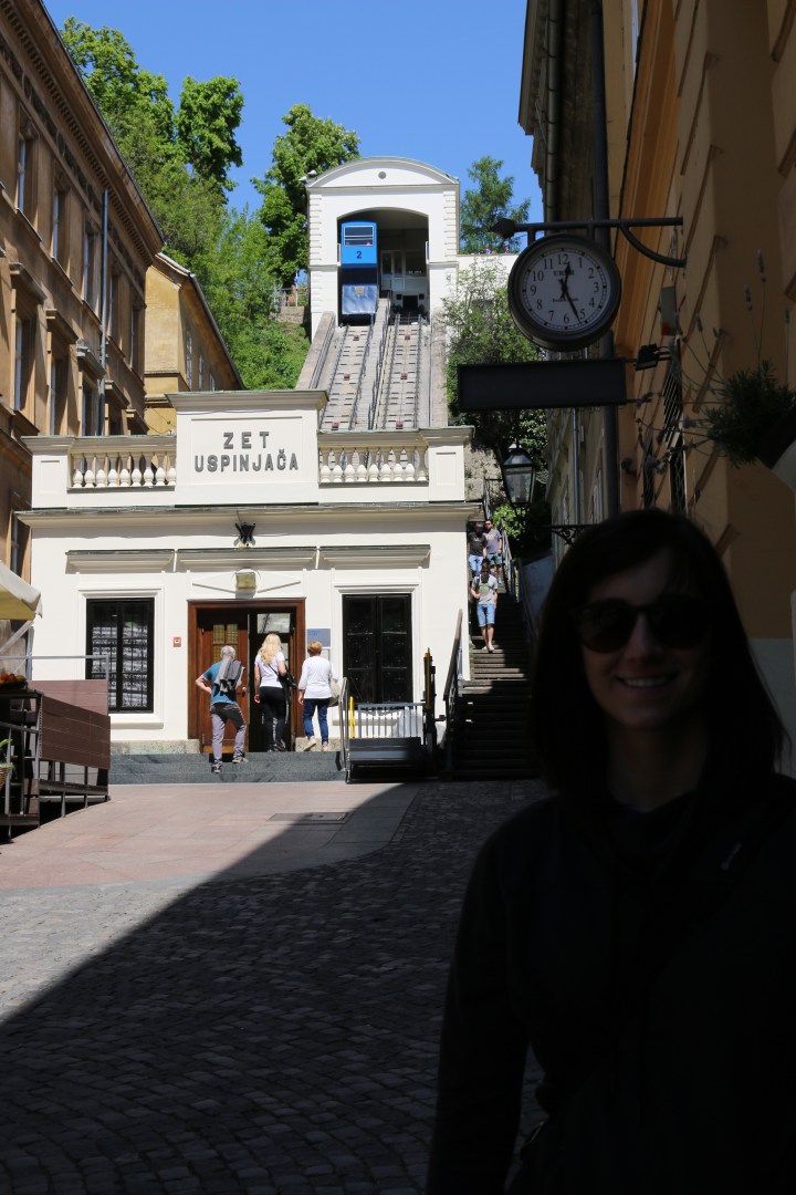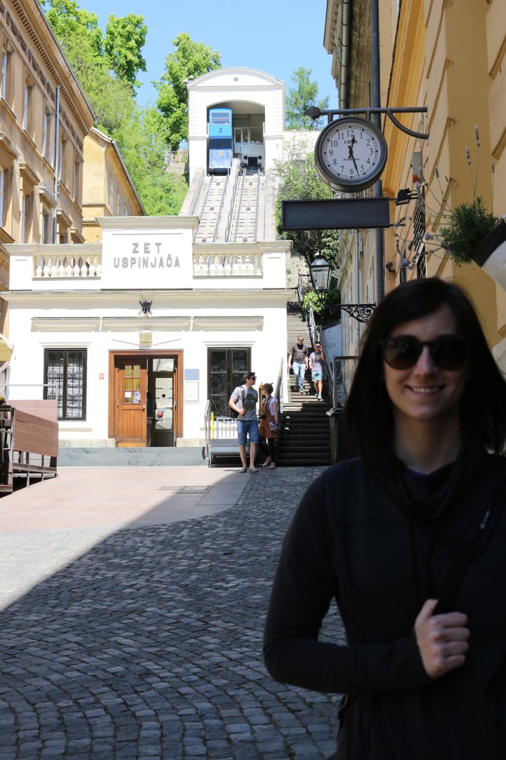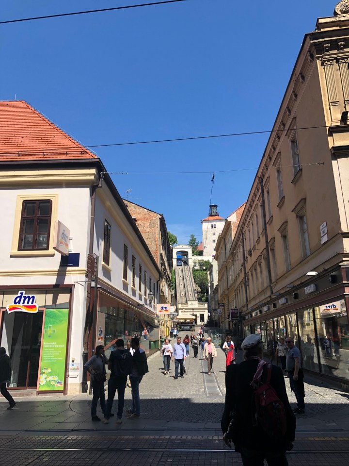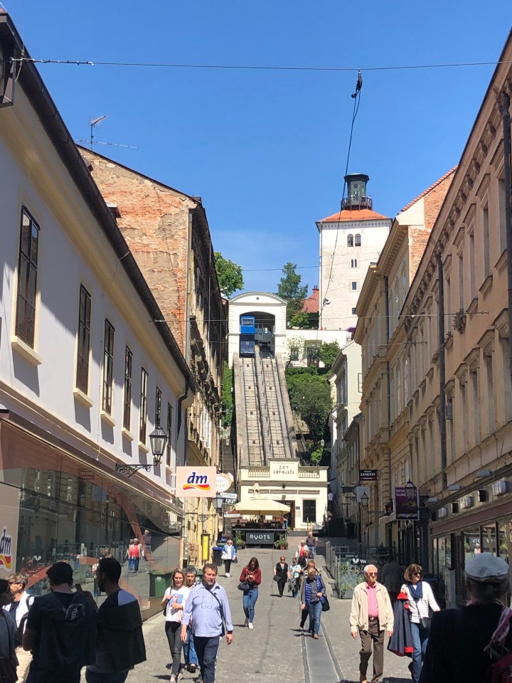 We then come across the Zagreb Funicular – situated in Tomić Street, connecting the Ilica Street with Strossmayerovo šetalište to the north. Its 66-metre track makes it one of the shortest public-transport funiculars in the world. We walk alongside the funicular until we reach the top of the hill, now at the foot of the Lotrščak Tower.