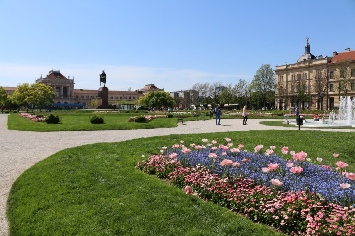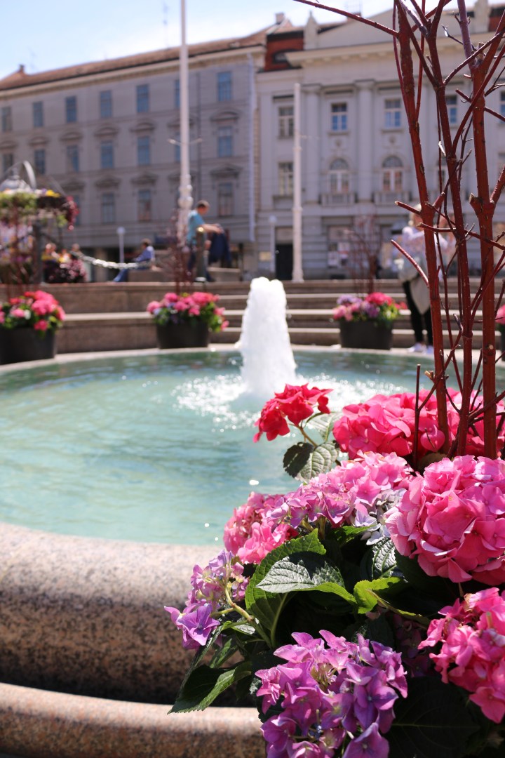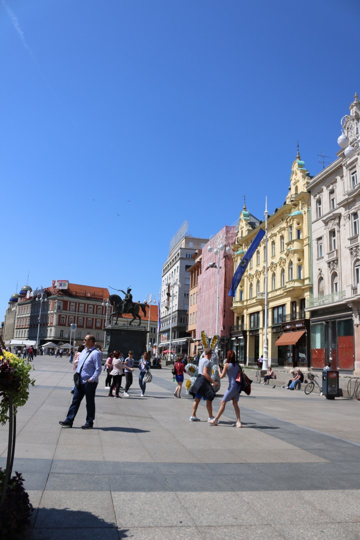 We arrive in the heart of Zagreb when we check into our hotel and have 3 hours before we can check in. We leave our bags at the desk and then set off to explore the city. Its absolutely GORGEOUS out at 77 degrees with a beautiful breeze blowing. We walk past clean, tall tan, yellow and beige buildings with red tiled rooftops all with intricate detailing and flower boxes in the windows. Bright blue trams run the center of the streets as tourists hurriedly avoid them.