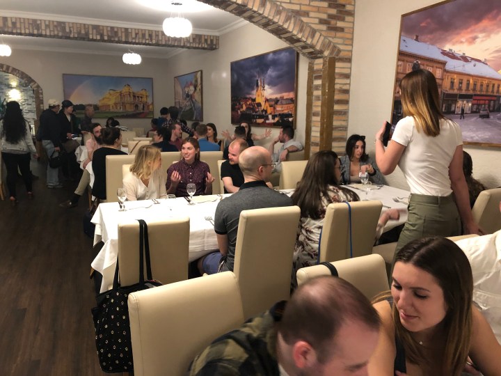Before dinner, we meet in the lobby of the hotel for a welcome greeting and champagne toast. We mingle until the bus arrives and takes us to our restaurant – Kaptolska Klet.