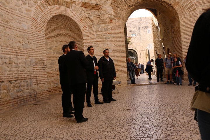 We enjoy traditional Klapa acapella music in the vestibule of the palace.