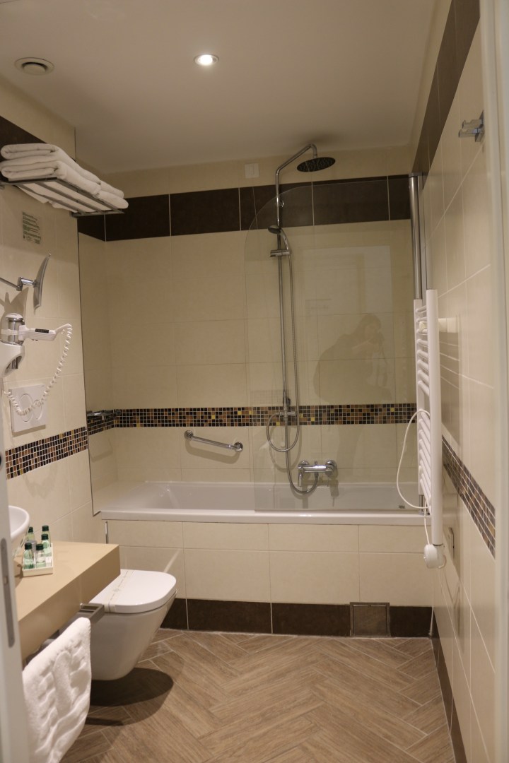 We check into the most gorgeous hotel – Grand Hotel Park, where we are in their four-star villas. Our room is incredible, complete with fountain courtyard view, sitting room, huge bathroom with towel warmer, and walk-out balcony. We all scamper around and pop our heads out off each balcony like the Brady bunch as we all are very thrilled with how awesome our last hotel rooms are.