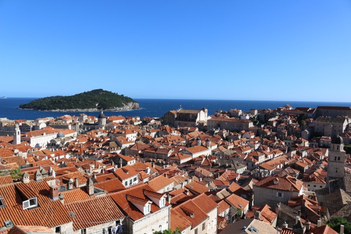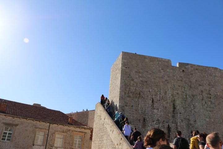 We crawl back inside and make our way to the top of the city’s walls. The Walls of Dubrovnik are a series of defensive stone walls surrounding the city walls. The walls run an uninterrupted course of approximately 1,940 meters (6,360 ft) in length, encircling most of the old city, and reach a maximum height of about 25 meters (82 ft). This was one of the best parts of the trip and it felt like we were in a movie scene, running atop a castle’s walls. The view from up here is absolutely unreal as well, as we can see across the entire city and water. This is also a full wide-screen shot of GOT’s Kings Landing.