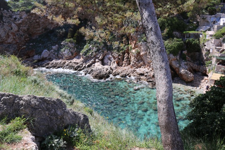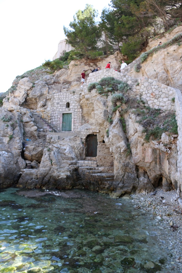 We then are met with a surprise as she then leads us through a small hole/doorway in the side of the exterior wall. When you walk through the doorway, you’ll find yourself on the edge of a cliff staring into the Adriatic. There is the “Buza Bar” serving drinks and others down sitting on the cliff’s edges. Such a cool experience!