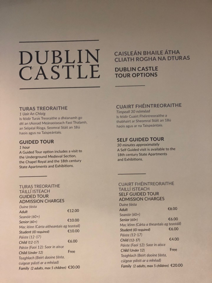 We venture down the street to Dublin Castle. This is such an interesting piece of architecture as it is multi-colored on the outside! We get in free with our Dublin Passes and take a self-guided tour through the ornate rooms. Erected in the early thirteenth century on the site of a Viking settlement, Dublin Castle served for centuries as the headquarters of English, and later British, administration in Ireland. In 1922, following Ireland’s independence, Dublin Castle was handed over to the new Irish government. It is now a major government complex and a key tourist attraction.