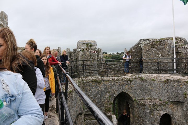Once are the top, there is one man who helps you lay down and lean backwards, upside down to kiss the Blarney Stone. One of the best experiences of the trip so far!
