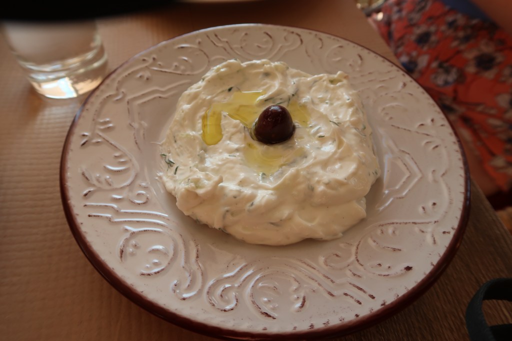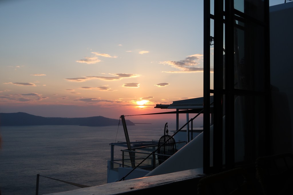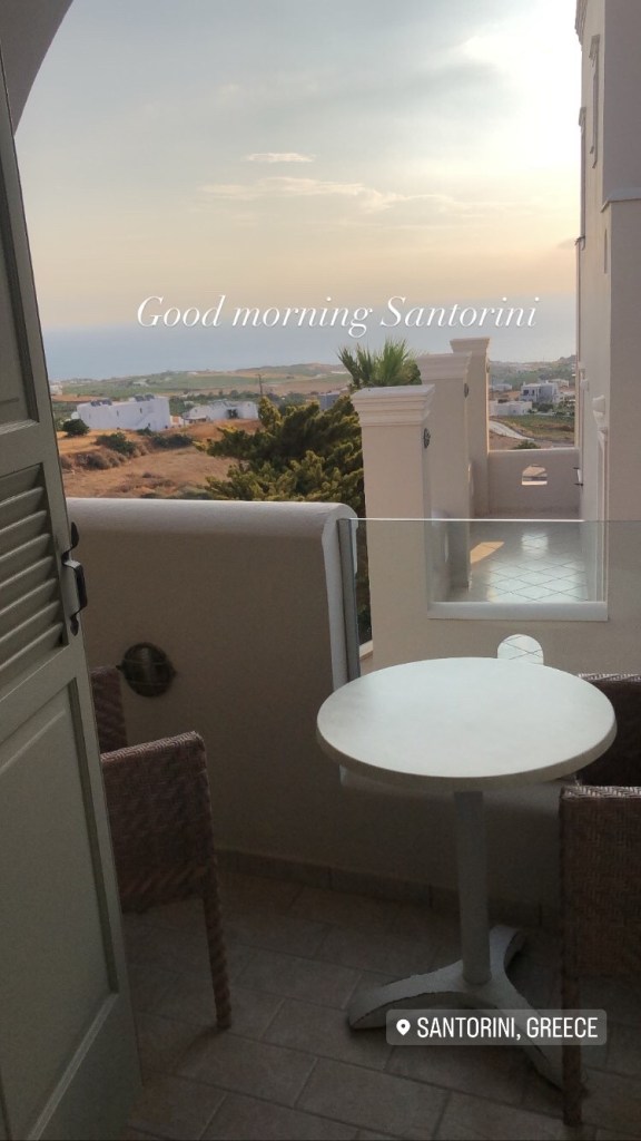 We return to the hotel to freshen up before our group dinner. We meet at the hotel lobby and walk to our hotel at the top of the city center. The restaurant was named Cafe Bar One/Off the Cliffs and it was another gorgeous restaurant with water views. We eat our way through appetizers of tzatziki, hummus, and greek salads, and the main course is moussaka. We sip on some white wine as we all catch up on what each other did for their free afternoon and watched the famous Santorini sunrise. It was a charming night and we were full and happy as we returned to the hotel. Tomorrow is an exciting day with a catamaran cruise and beachside dinner.