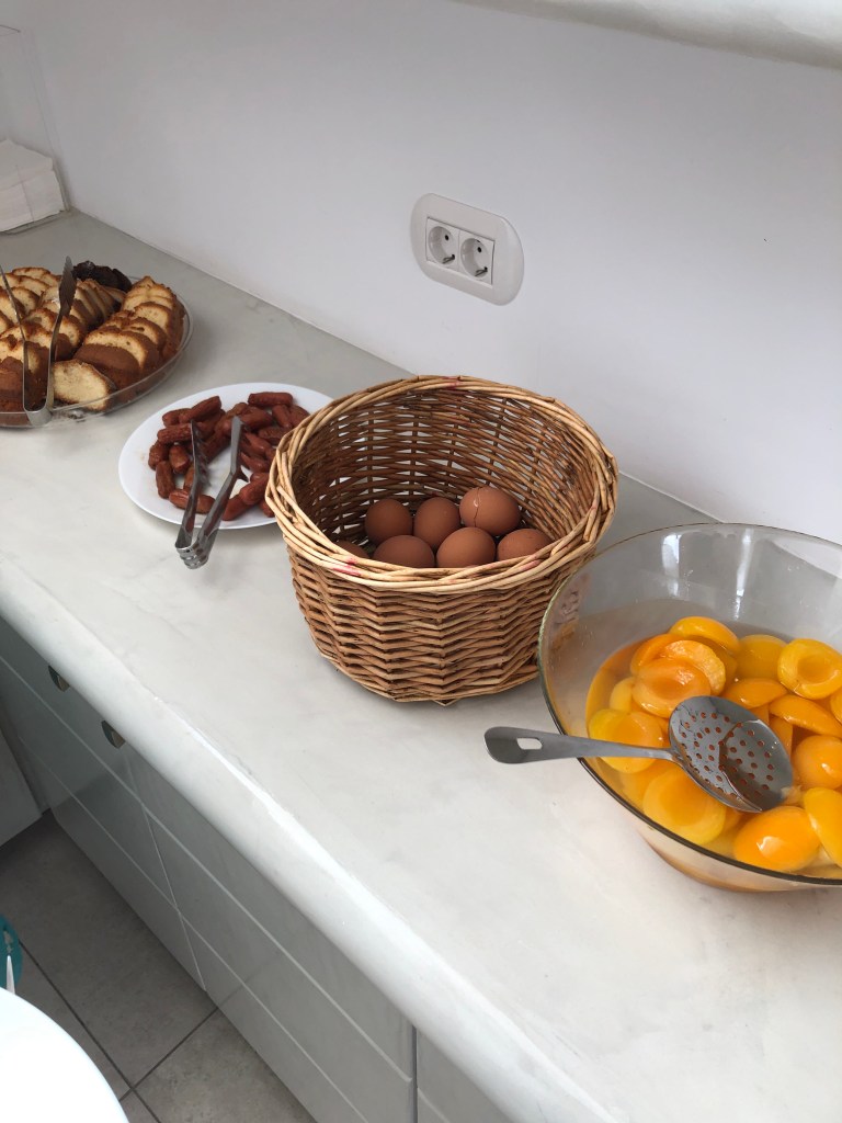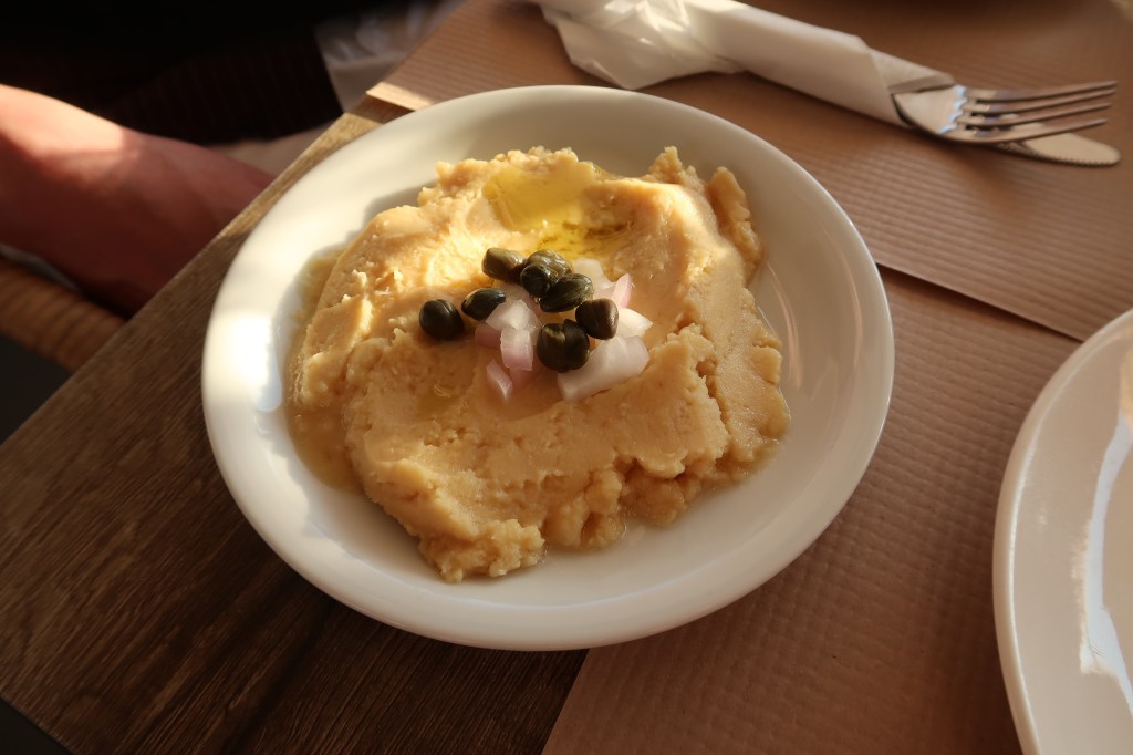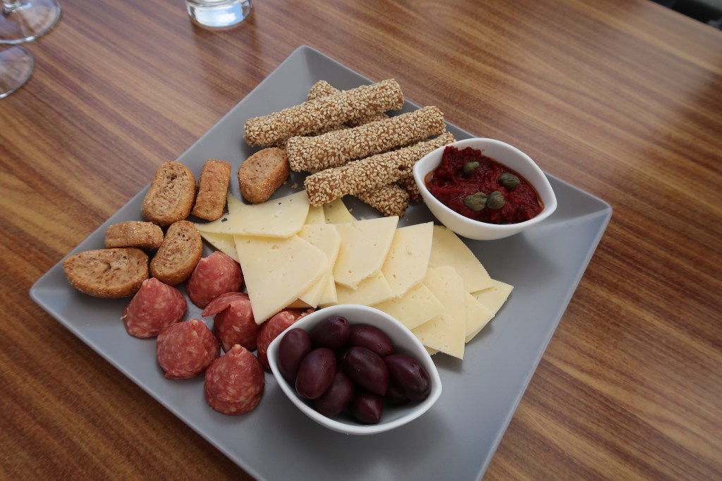We enjoy our wine paired with meats, cheeses, crackers, olives, and a sweet sun-dried tomato dip. This was such a charming way to spend the early afternoon, as we sip on our wine, and enjoy the view of the boats coming in and out of the caldera.