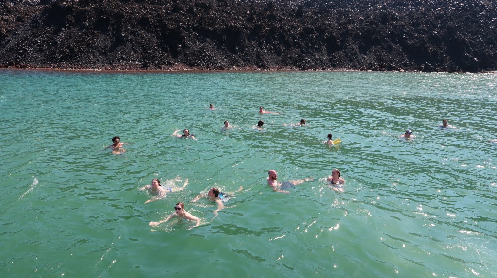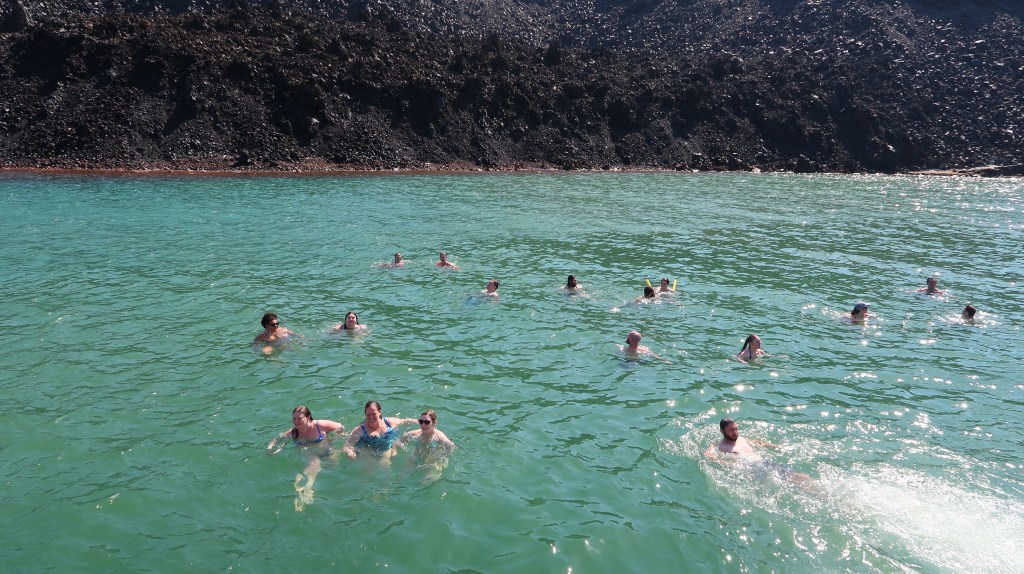 We first stop at the ‘hot springs’ where half the group jumps into the cold water. Some have pool noodles while others don’t, and we float in the water near the boat, searching for the warm ‘hot spring’ areas of water.
